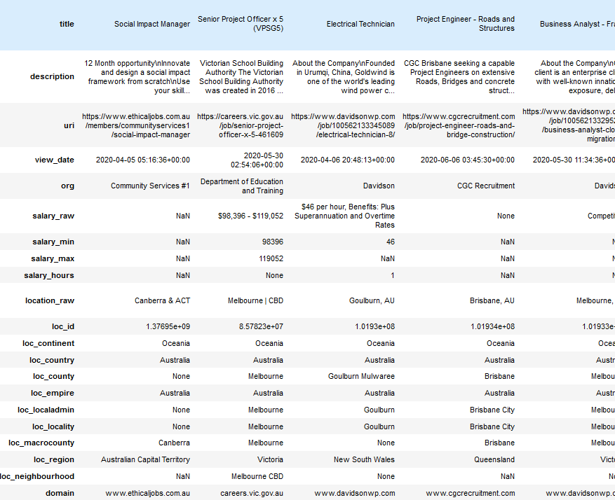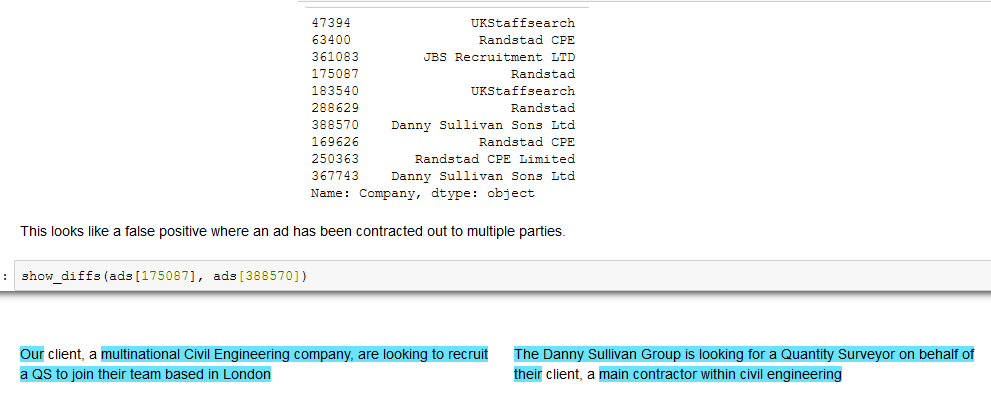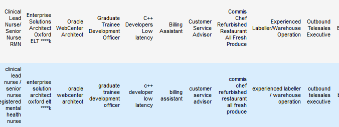 I’ve been using data from the Adzuna Job Salary Predictions Kaggle Competition to extract skills, find near duplicate job ads and understand seniority of job titles. But the dataset has heavily processed ad text which makes it harder to do natural language processing on. Instead I’m going to…